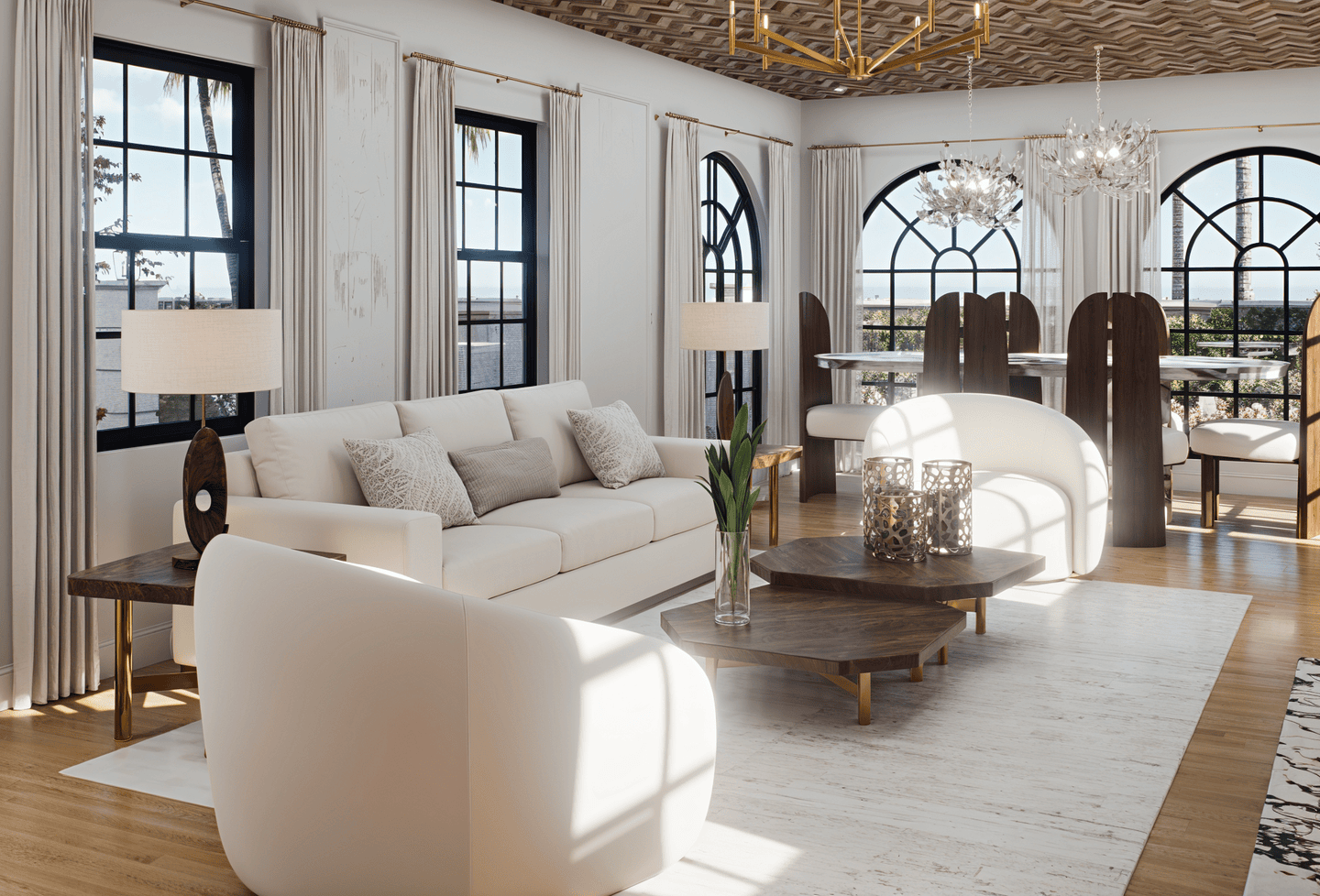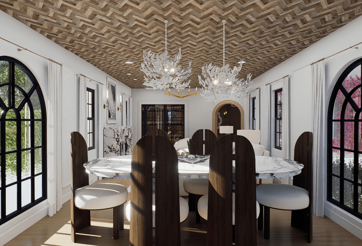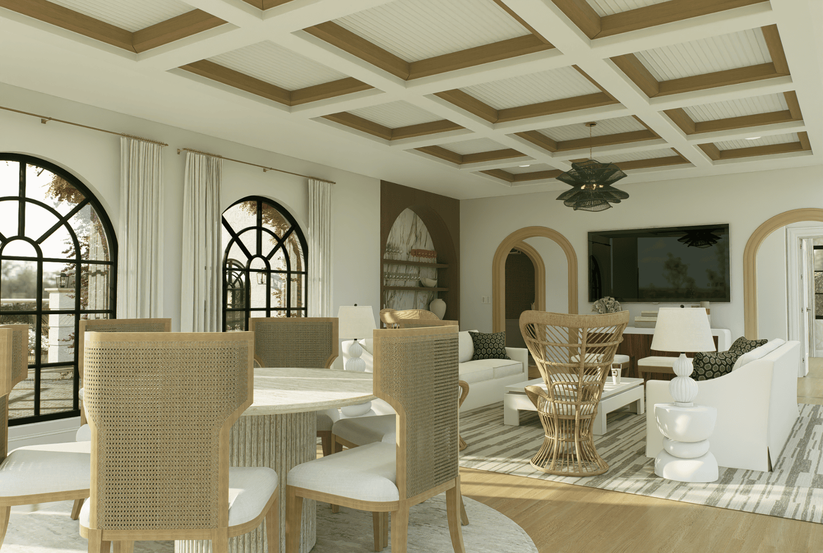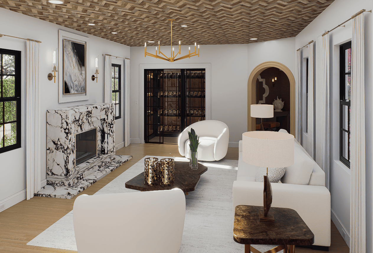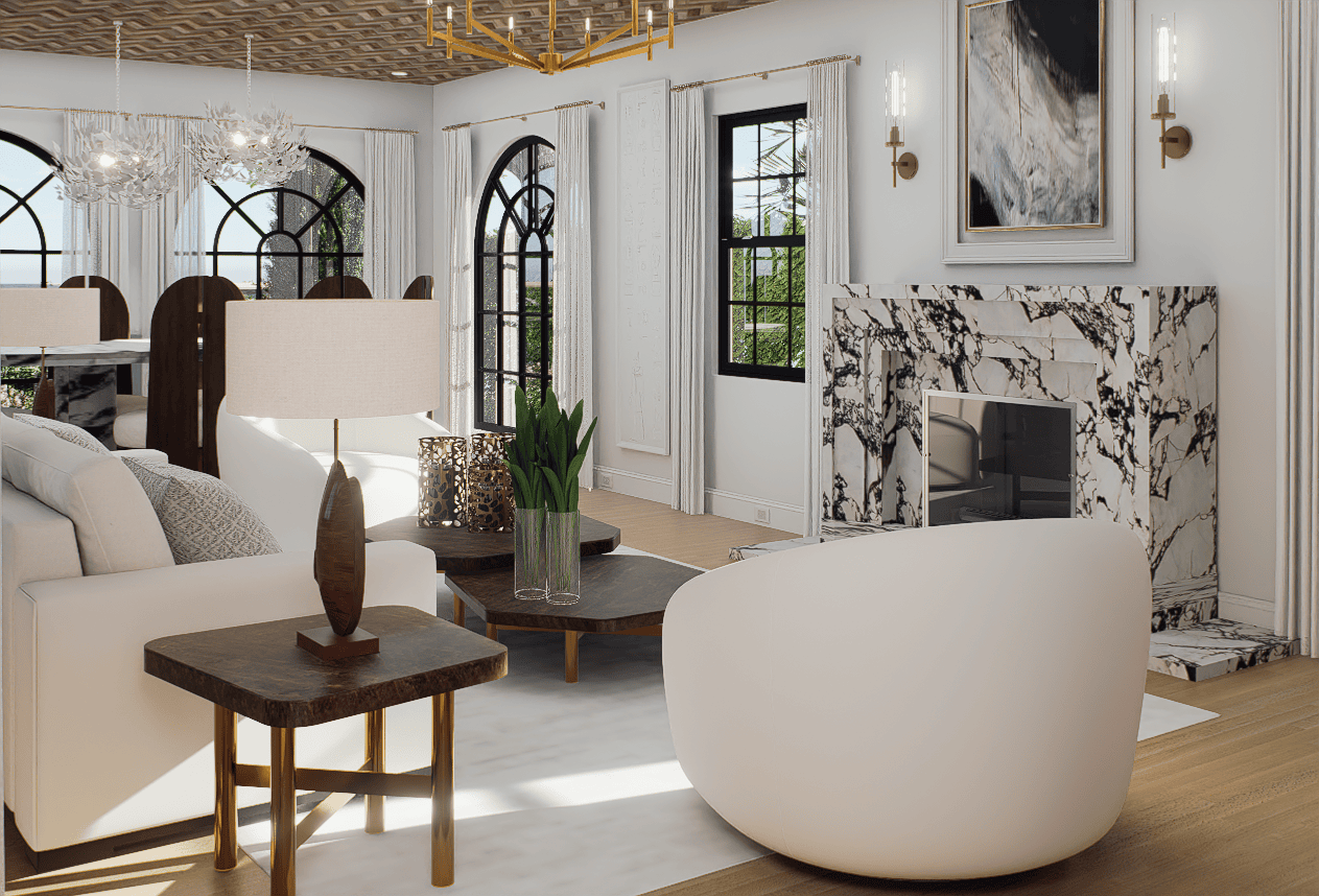 Explore our collection of photorealistic interior renderings for 221 Monroe Drive in West Palm Beach. This luxury home remodel showcases refined materials, custom furnishings, and natural lighting with meticulous detail. From the elegant marble fireplace to the sculptural dining space and textured ceiling, every room was designed to elevate the homeowner's experience while communicating design intent with precision. These interior visuals are ideal for pre-construction approvals, marketing campaigns, and real estate presentations.